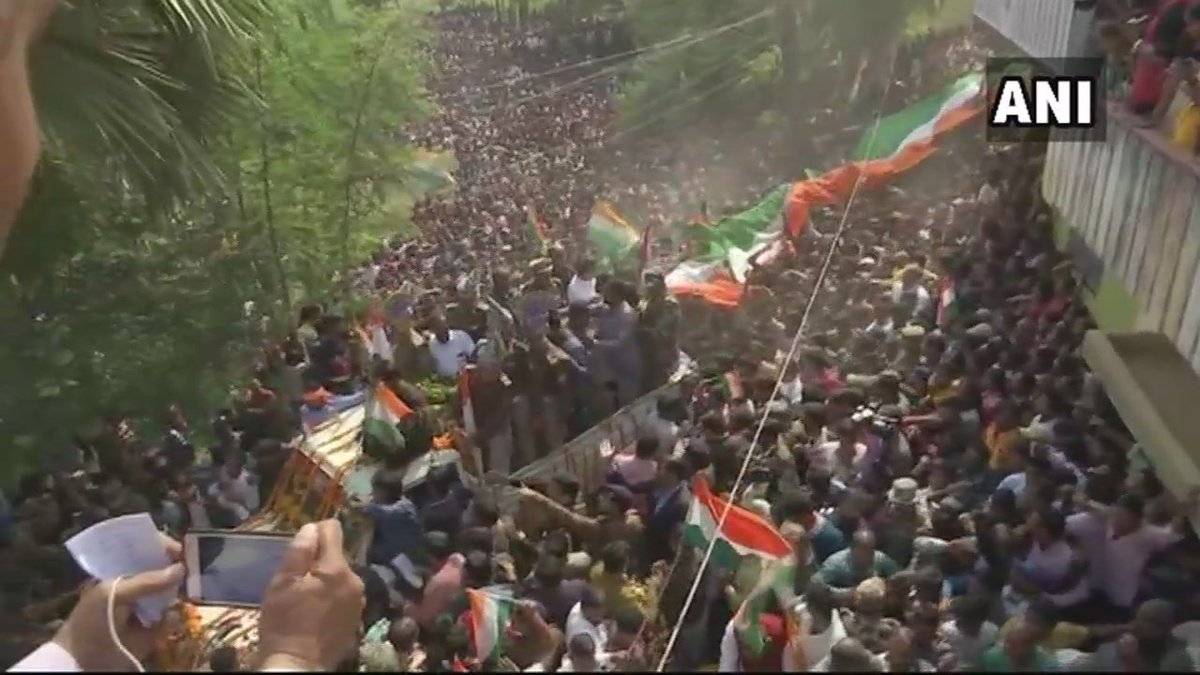 वाराणसी में शहीद रमेश यादव का पार्थिव शरीर गांव पहुंचने पर उमड़ा जनसैलाब. फोटो ANI